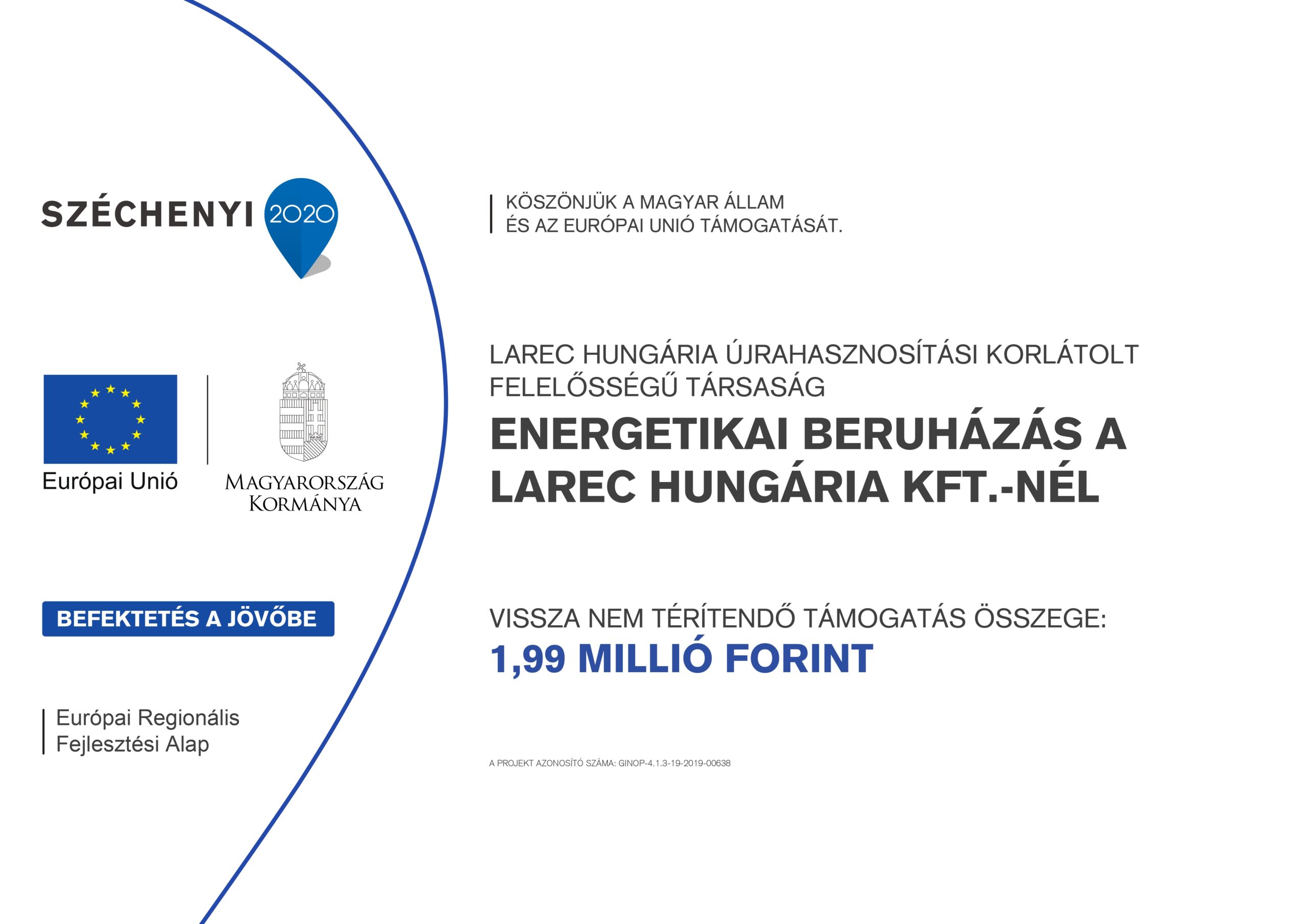 A projekt címe: „Energetikai beruházás a Larec Hungária Kft.-nél"